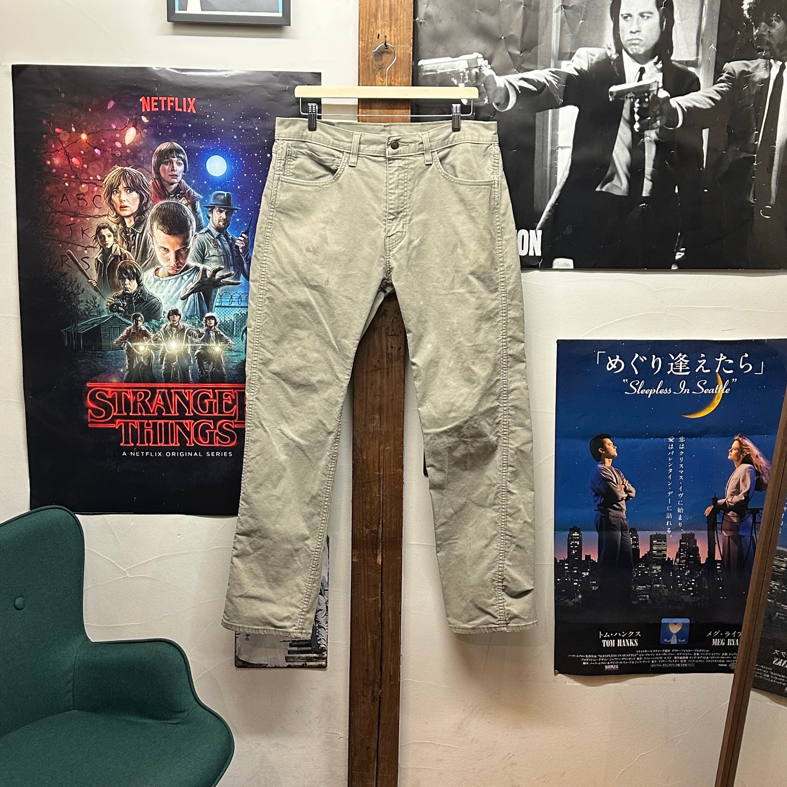 リーバイスのダック生地を使用したパンツは、独特の風合いが魅力的です。若干の汚れがあるものの、それがむしろ当時の味わいを演出し、ユニークなスタイルを与えています。色合いは使いやすく、細すぎないシルエットが絶妙なバランスを保ち、カジュアルからお出かけまで幅広く活躍します!デイリーユースにもぴったりなアイテムです。